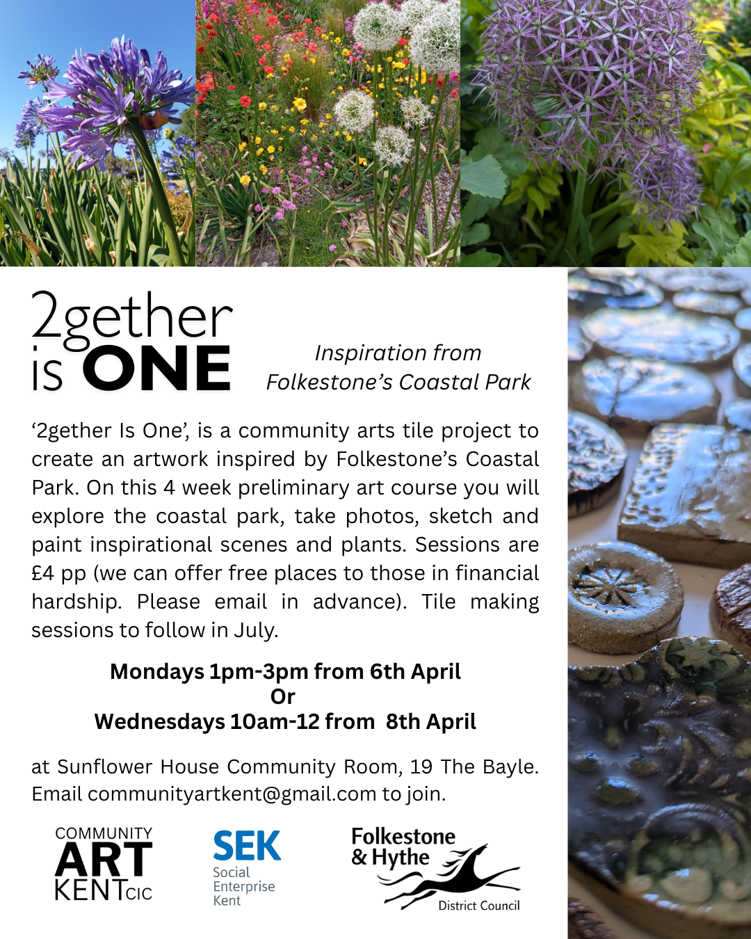 ‘2gether Is One’, is a community arts, site specific project to create a tiled artwork inspired by Folkestone’s stunning Coastal Park.