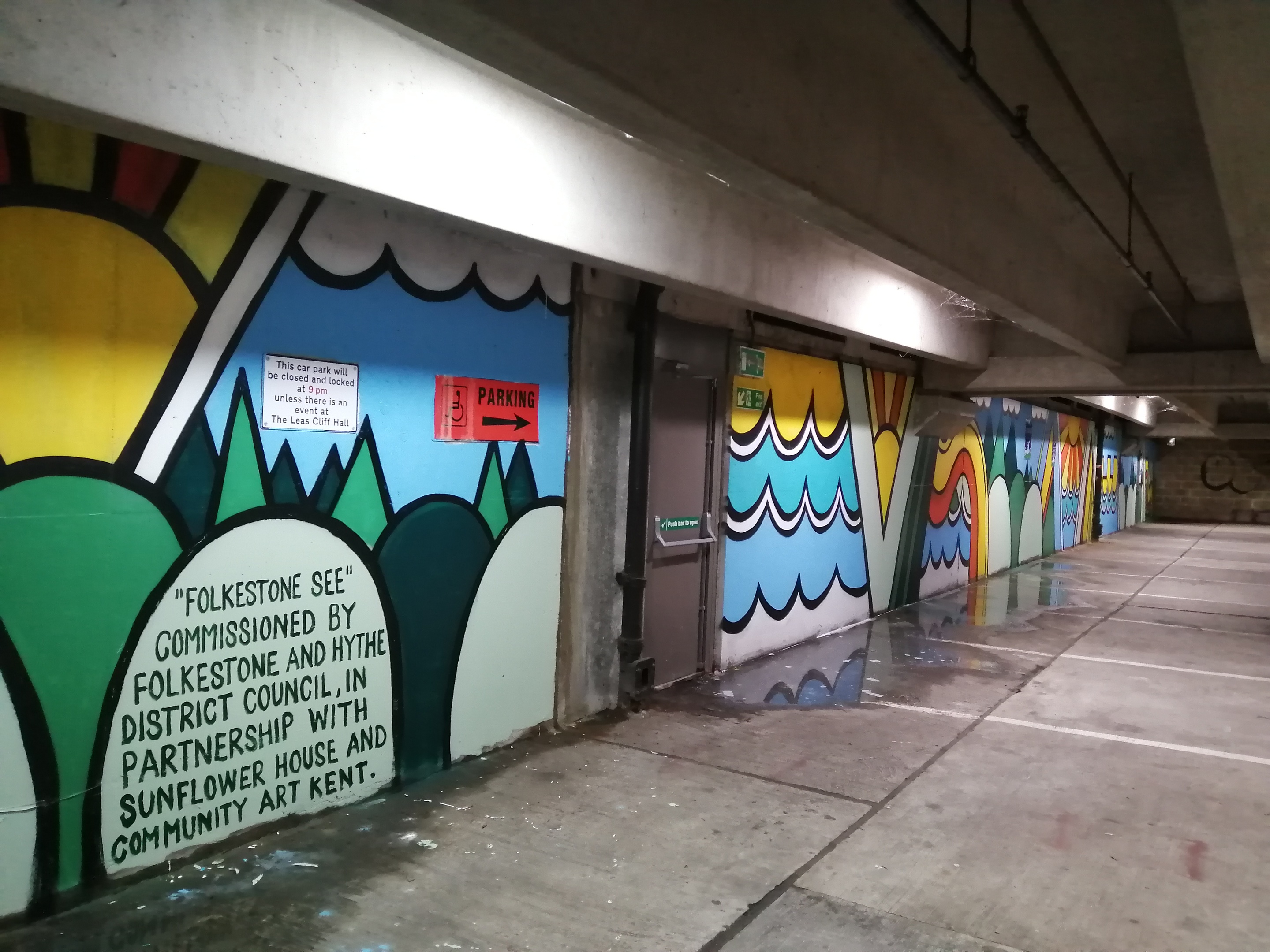 Folkestone and Hythe District Council and Sunflower House commissioned Community Art Kent to redesign part of Sandgate Road Car Park, with the aim of reducing tagging, brighten up the car park and make it feel safer for everyone.