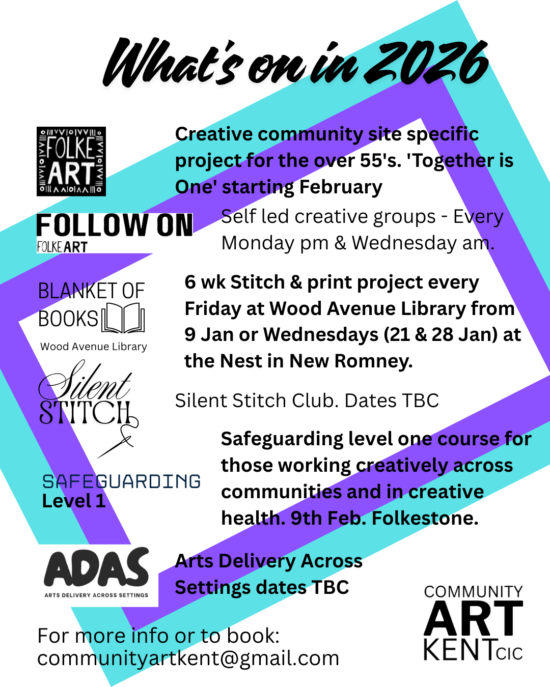 'Follow On Folke Art' weekly sessions, a self led open adult art group which interact intermittently with external creative projects.